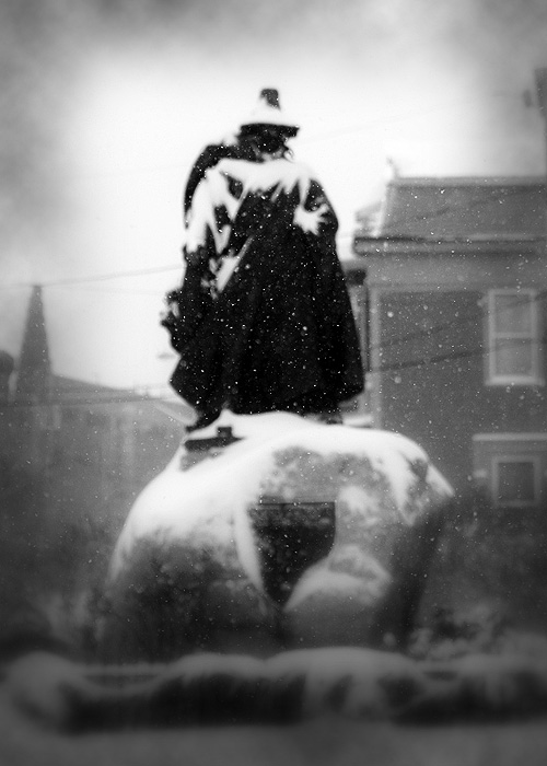 I took a walk in downtown Salem today as the first major snowstorm of the year was just winding down. There was at least a foot of snow on the ground after a blizzard hit overnight. The photo to the left and the one below are of the statue of the founder of Salem Roger Conant. In 1626, he founded Salem, Massachusetts and was its first governor, but in 1627 he was replaced by John Endicott. He remained active in town affairs and is today memorialized in a statue across from the Salem Common.[4] He died on November 19, 1679 in Beverly, a nearby town which he also helped found. Check out the wikipedia article on him here to find out more: http://en.wikipedia.org/wiki/Roger_Conant_%28Salem%29