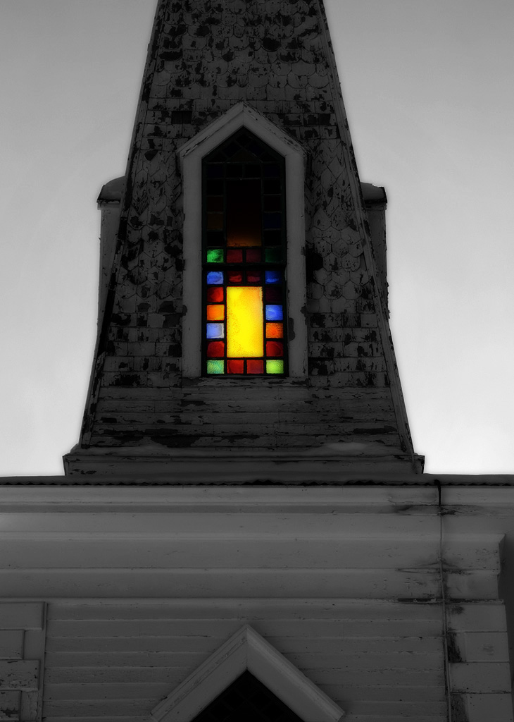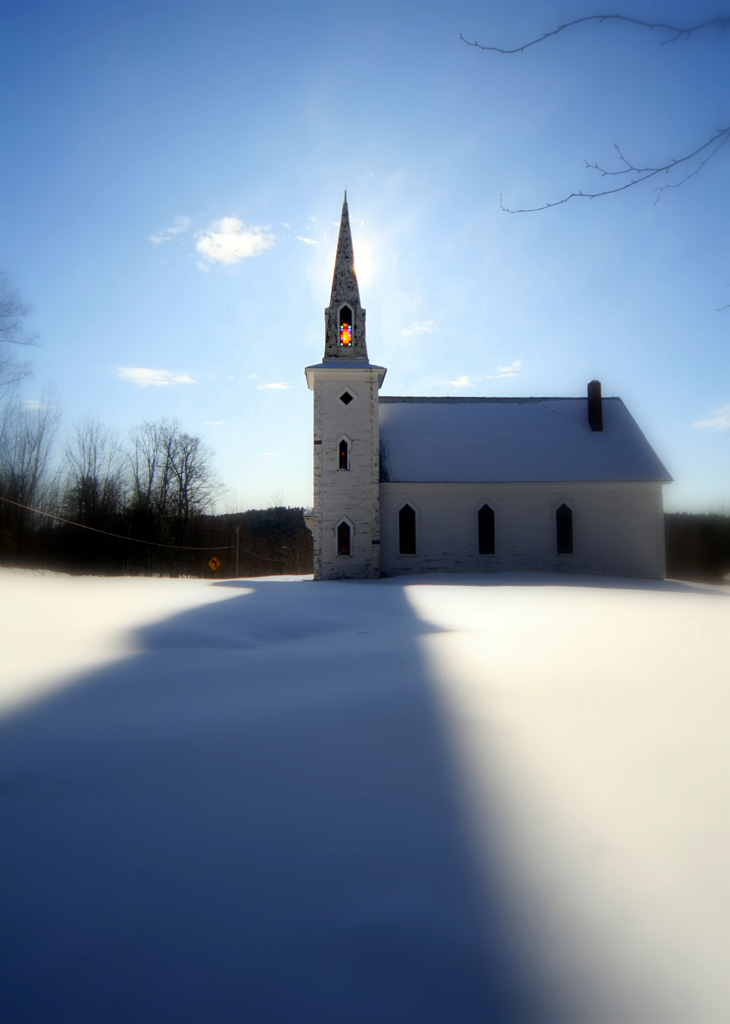 I was in Parsonsfield Maine this weekend. This morning we went on a road trip around the local area and happened upon this historic church. The sunlight was spectacular and positioned perfectly to shine through a stained glass window high on the church steeple. I took several photos and have posted my best ones below.